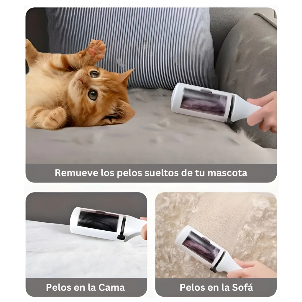 Este rodillo electrostático es tu mejor aliado para dejar tu ropa y muebles impecables 🛋️👕. No necesita repuestos ni pegamento, ¡es infinito! 🙌 Con su capa aterciopelada y sistema tipo velcro, atrapa el pelo de perros y gatos en segundos y los guarda en su deposito trasero de para removerlos facilmente.
